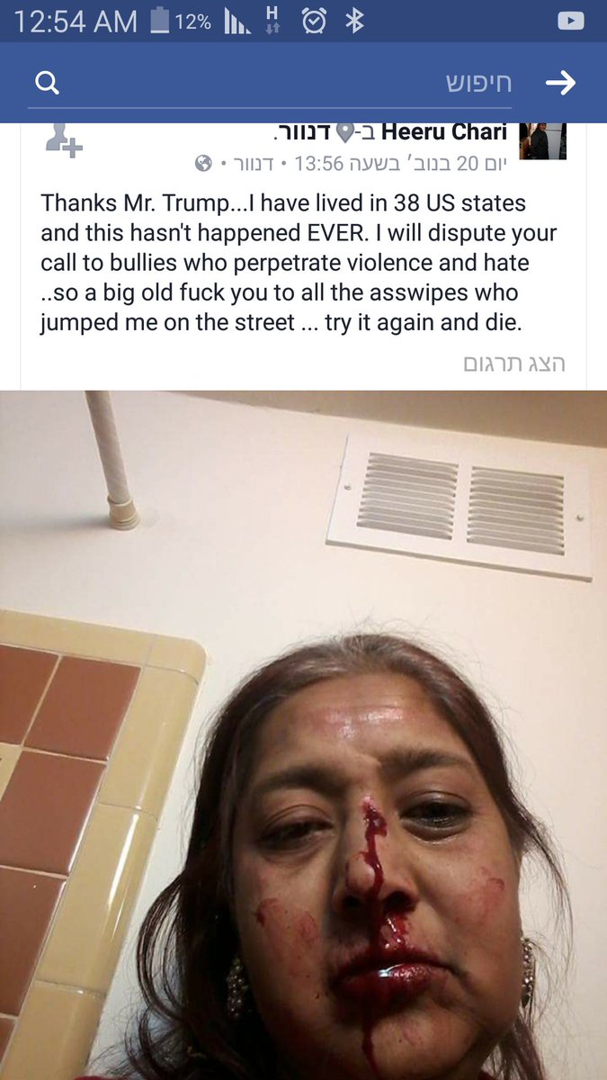 2/וזו תמונה של חברה בפייסבוק של חבר הודי שלי. הודית אמריקנית שתקפו אותה בדנבר. אמרו לה שהיא מסתננת ושטראמפ ניצח. לא דווח בשום מקום. יומיומיpic.twitter.com/pQSZmzWUTb