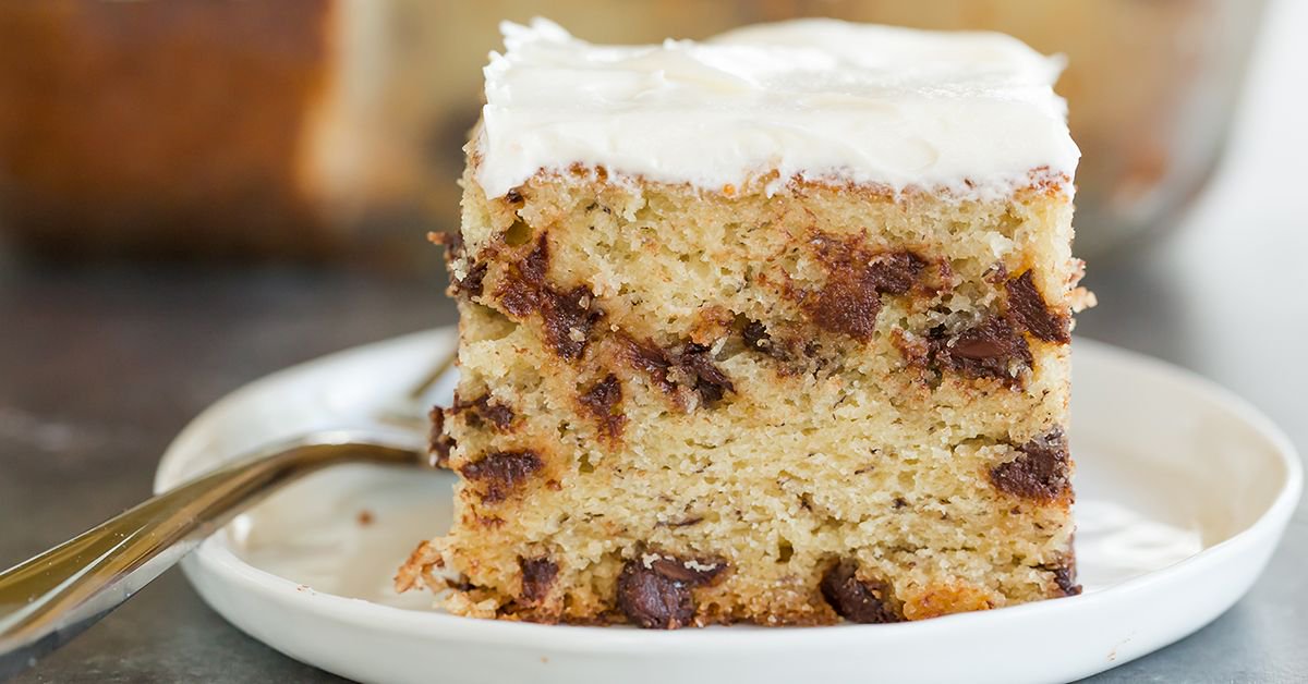 [new post] Banana-Chocolate Chip Snack Cake with Cream Cheese Frosting: