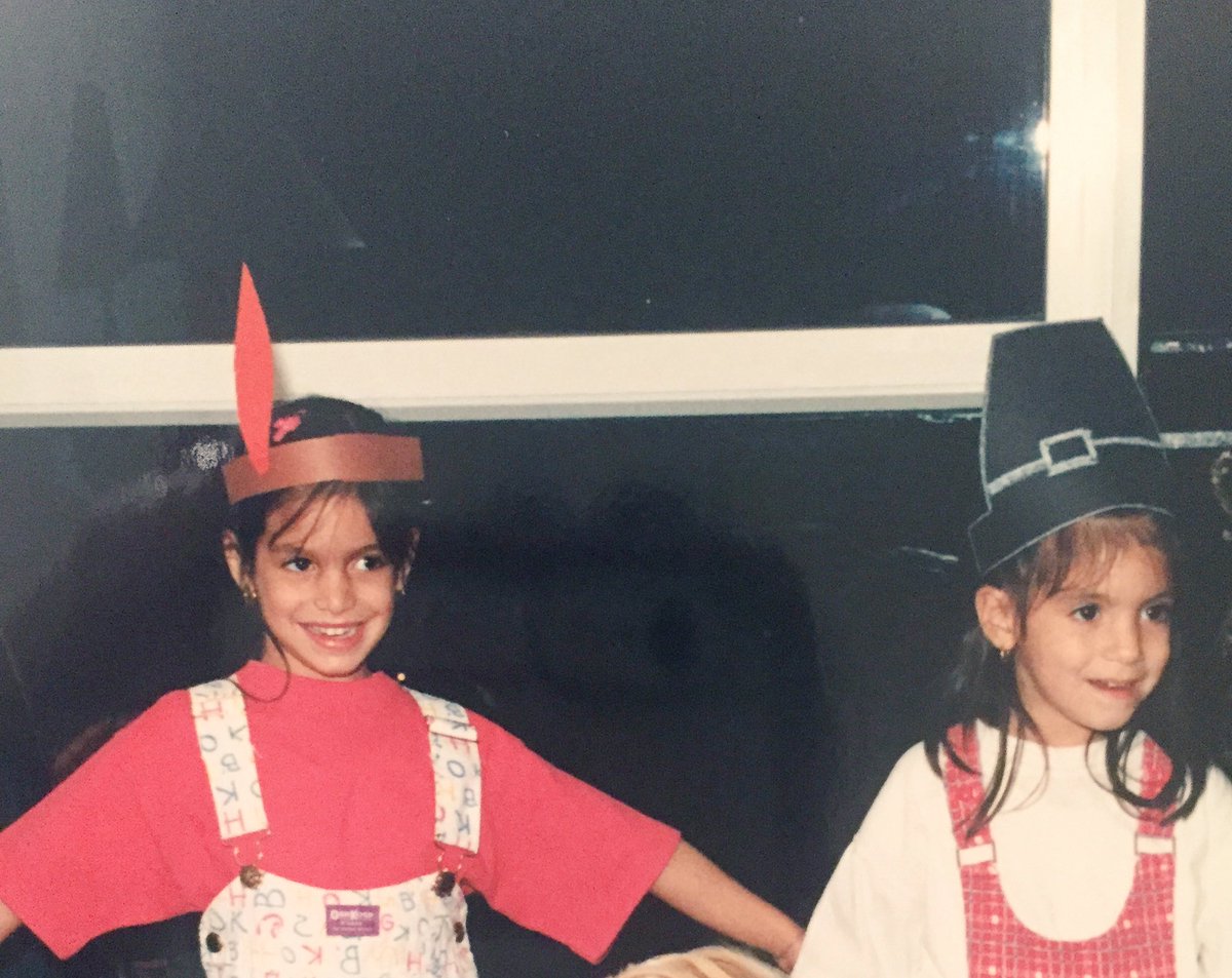 Practicing for our Thanksgiving school play back in the day. Pretty sure we nailed it