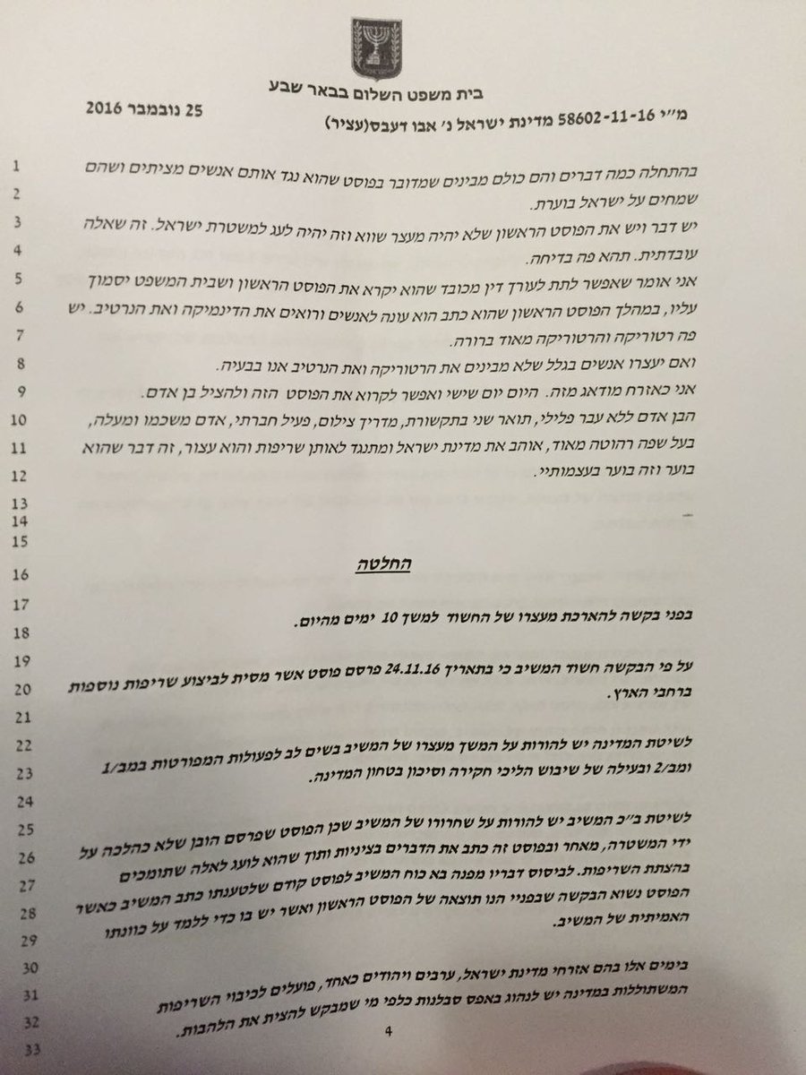 החלטת השופט בעניין הבחור מרהט שנעצר על פוסט נראית רק לי מוזרה?pic.twitter.com/wZNEeepXB1