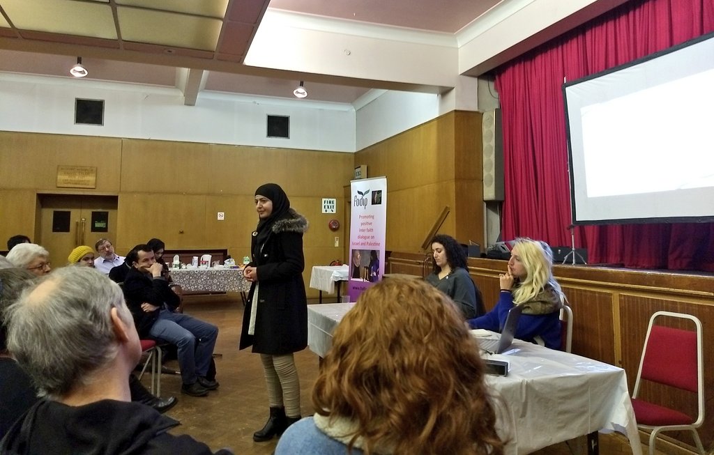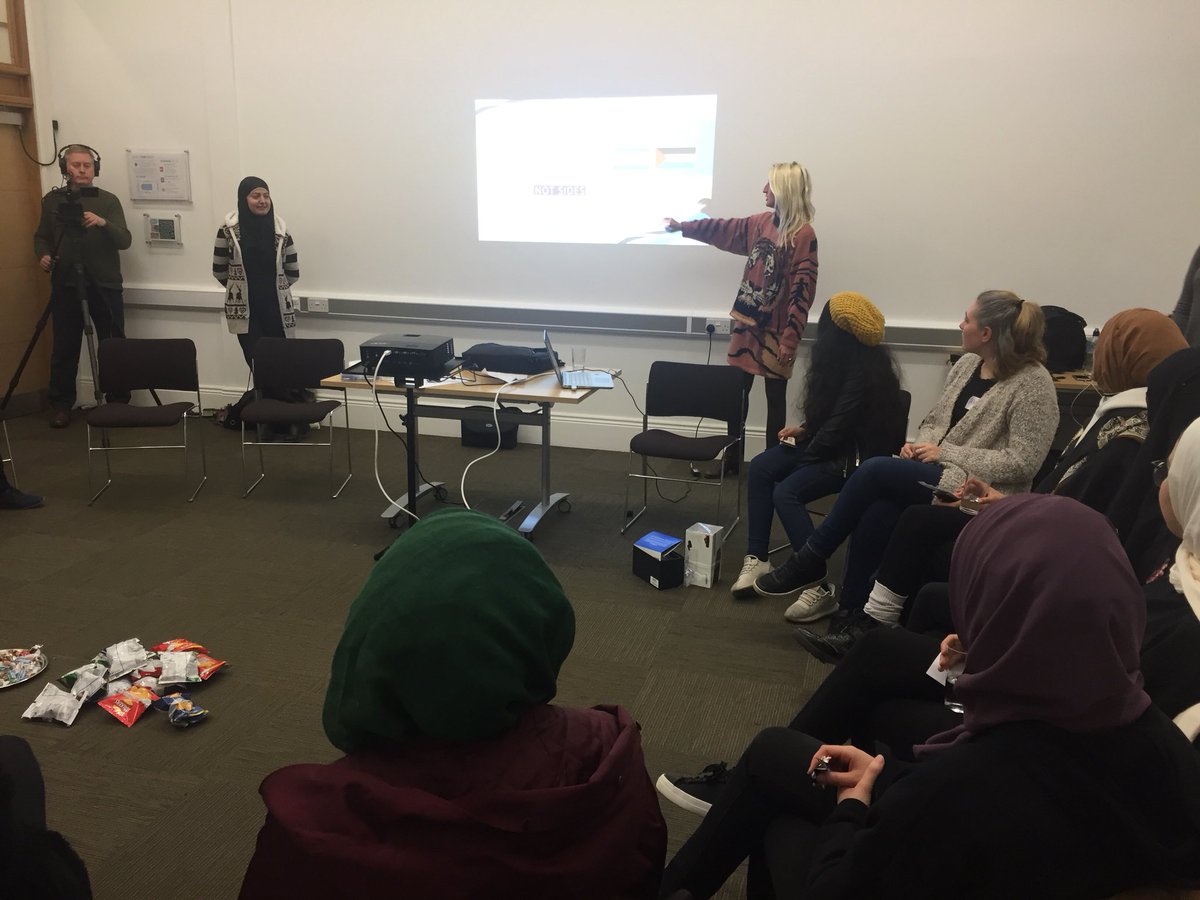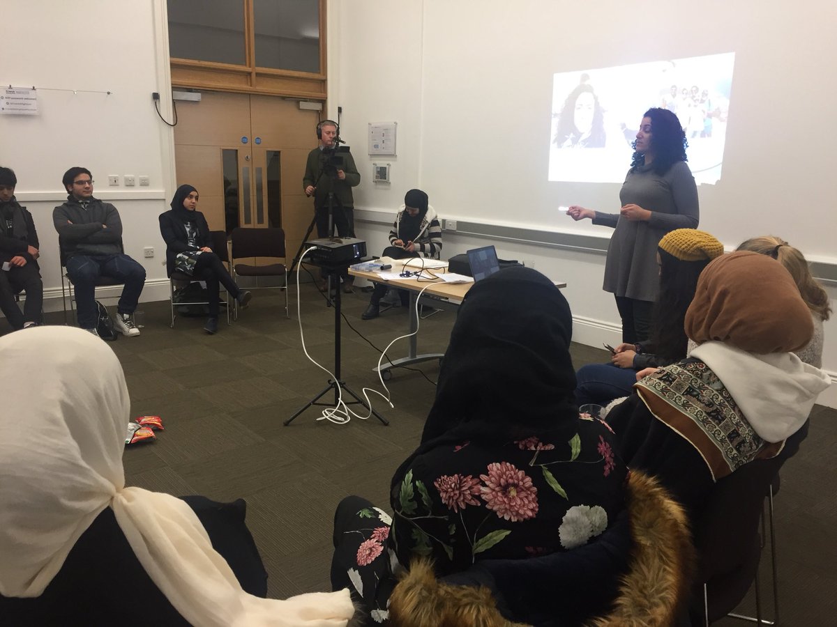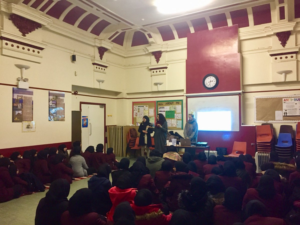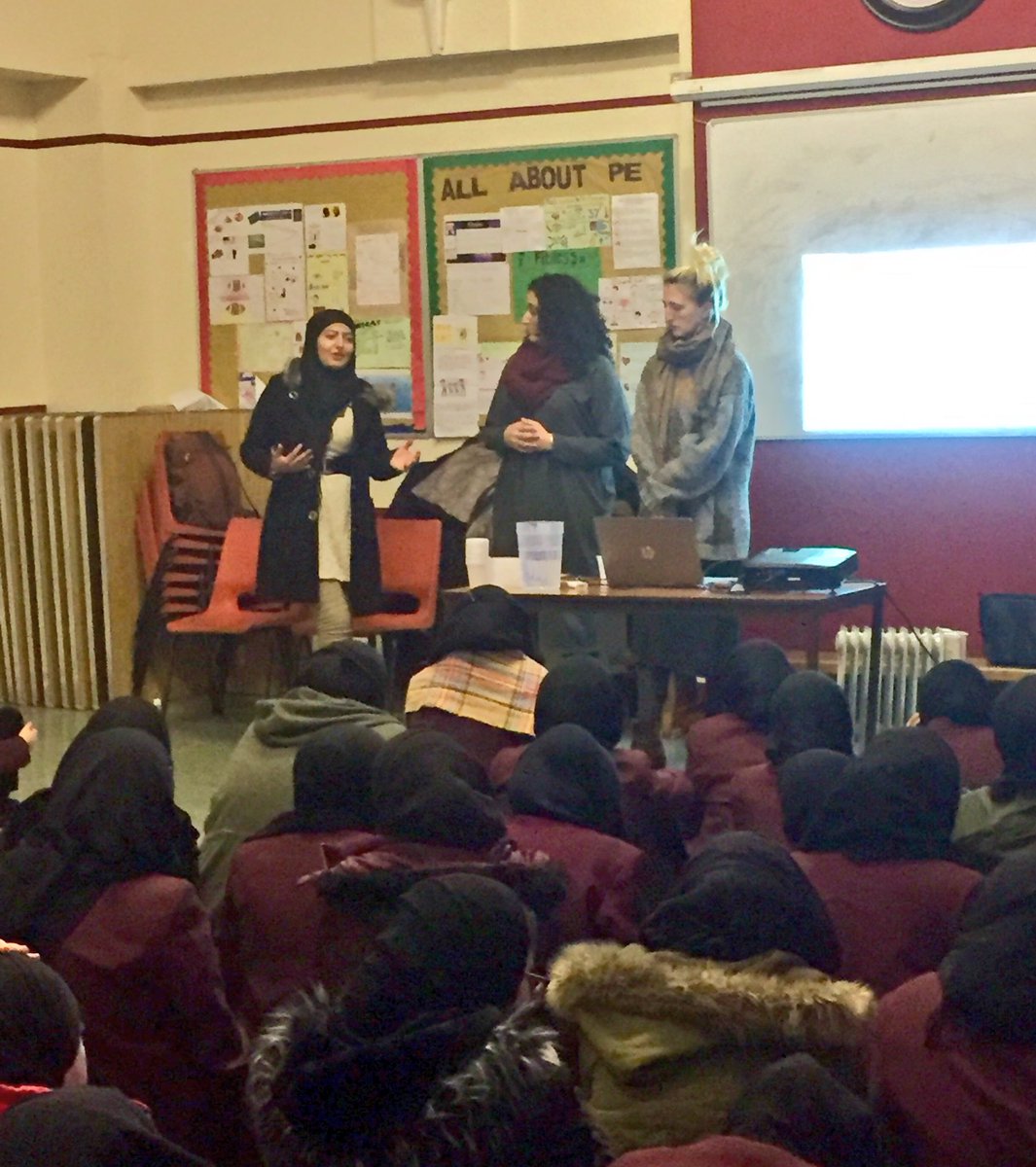 Amal & Shaked speaking to girls at Afifah High School in Manchester this afternoon. Answering fantastic Qs like “Why do you think the media portrays Israelis and Palestinians as hating each other?” Big thanks to