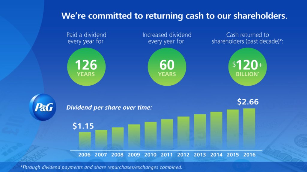 P&G has increased its dividend for 60 consecutive years. We’ve been paying a dividend for 126 consecutive years. http://spr.ly/60198PiRl