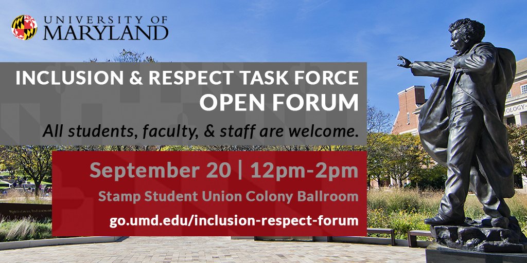Inclusion and Respect Task Force open forum is tomorrow at 12p in Colony Ballroom. Details: