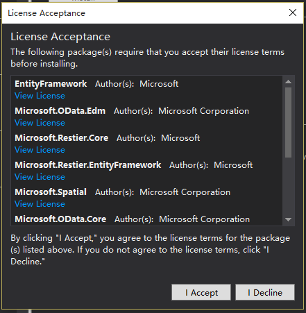 This tool is used to modify the config class to simplifies the process of building the OData service with EF by Restier(>=0.4.0-rc) in visual studio. The scaffolding item will appear in the scaffolding list by right click on any folder in project and select “Add” -> “New Scaffolded Item”