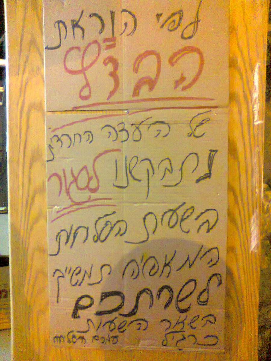 בבד"ץ 'העדה החרדית' מתחשבים בספרדים: מודעה במאפיית נחמה הלילהpic.twitter.com/BBdP97HfxE