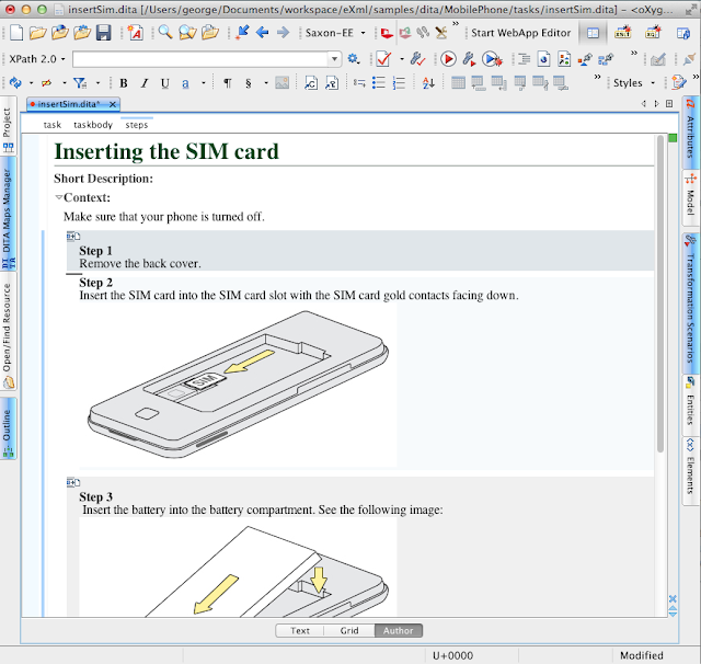 This version of oXygen makes a leap forward in working with XML modules. Using the Master Files support, oXygen assists you while editing an XML document that belongs to a set of assembled modules, and provides you features like module validation, in-context content completion assistant, ID referencing or module connection overview.