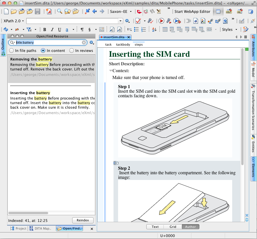 The first match seems to be the one we want, if we look at the title, so we select it. oXygen will load that topic in the