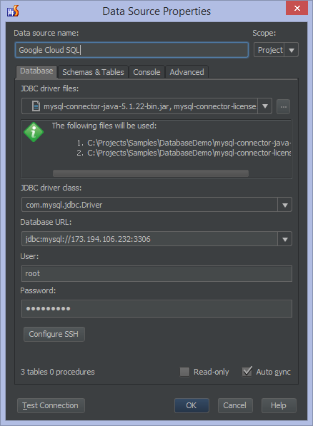 - Use standard drivers, such as Connector/J, Connector/ODBC, and Connector/NET, making it exceptionally easy to access Cloud SQL from most applications
