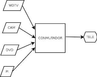 Aunque es mas complicado que raspberry pi -> tele, la razon es que tengo tambien un tuner, un WDTV etc. El WDTV y el Pi comparten un almacenaje, pero quizás en el futuro el Pi se sustituira como "media center" también.