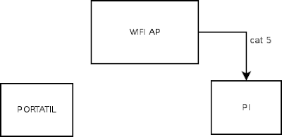 Detrás de la tele, hay un punto de acceso a la red (wan, 5 port lan y wifi), el portátil se conecta Wifi, y el Raspberry Pi con cable cat 5. DHCP hace que todo es automático.