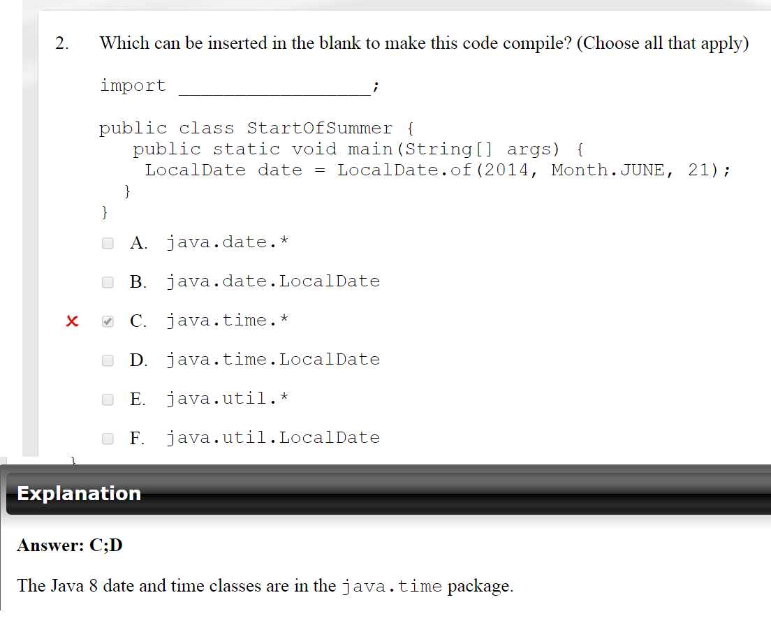 The one thing which is really tricky about Oracle Java certifications is the exam process and format. Even though the questions are multiple choice questions, the format is not pre-defined or written on stone. The better way is to familiarize yourself with the process of the certification you are giving e.g. OCMJEA requires multiple exams to be passed and you not only have to solve multiple choice questions but also you need to write essay and design document. Similar to become Java SE 8 certified developer, you need to clear both OCAJP 8 (1Z0-808) and OCPJP 8 (1Z0-809) exam. OCAJP 8 exam process.Regarding the format of questions on the exam, you may get questions with just one correct answer or multiple correct answers. You may get fill in the blanks or word arrangement type of questions. The best place to get yourself familiar with the exam format is to buy a good mock exam e.g. Enthuware, Whizlabs, or David Mayer's Java 8 Certification Questions.