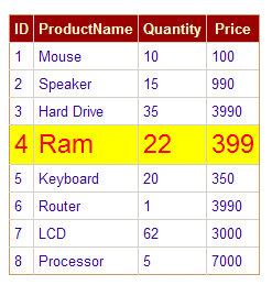 As you can see from image, that there is a GridView control populated with data and above that there is a textbox and a button. So the problem was, based on the search text entered in search text box, filter the data from GridView on any of the column . For example, "10" is entered then only those rows should be visible which have 10 in any of the column. It can be in ID, ProductName, Price or quantity column.
