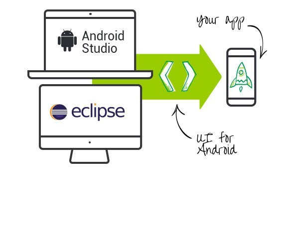 UI for Android supports both Eclipse and Android Studio. The API level support starts from Android Gingerbread (API level 9). These two short videos show you how to: