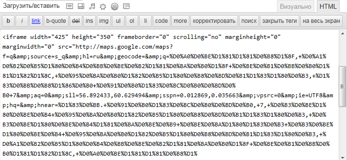 6) В консоли WordPress.com откройте запись или страницу для редактирования. Вставьте код в окно редактора HTML. (Переключение в HTML-редактор выполняется с помощью вкладок, расположенных справа над окном редактора.)