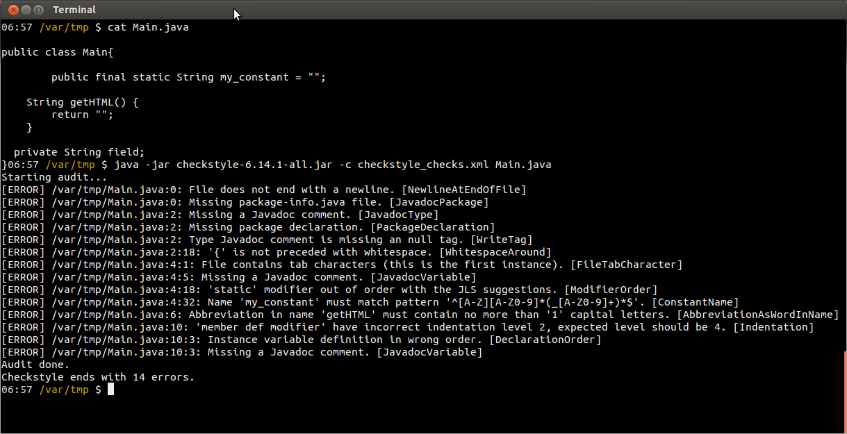 Checkstyle is a development tool to help programmers write Java code that adheres to a coding standard. By default it supports the Google Java Style Guide and Sun Code Conventions, but is highly configurable. It can be invoked with an ANT task and a command line program.