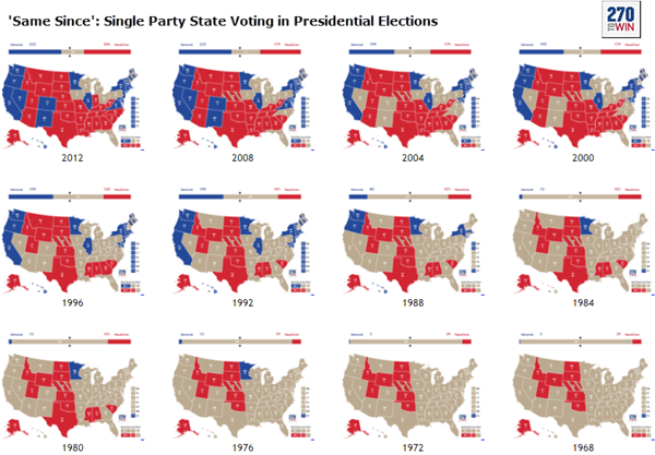 'Same Since' electoral maps updated: Series shows single-party presidential election voting consistency. http://ow.ly/NoT5307xzKJ pic.twitter.com/qBBoT7Rgm7