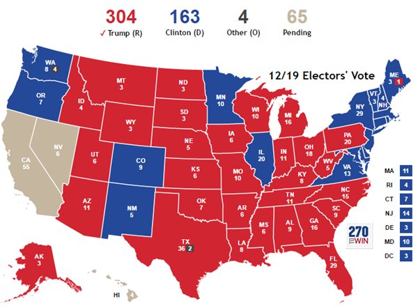 California, Nevada electors vote for Clinton. Hawaii should be next hour to close out the map. http://ow.ly/47YS307htXG pic.twitter.com/shGT8ybWPI