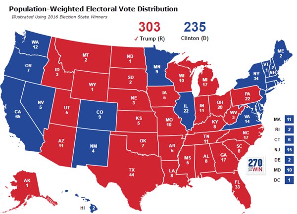 What if electoral votes were weighted by state population alone? Makes little difference in 2016. http://ow.ly/oXNH308jusJ pic.twitter.com/3Y06DUxEbF