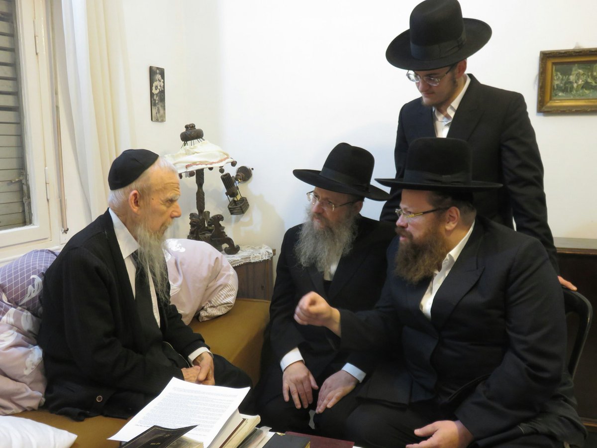 יו״ר וועדת הישיבות הגרח״א קופמן והאסטרטג ואיש החסד מנחם גשייד מתברכים במעונו של מרן ראש הישיבה הגר״ג אדלשטיין לרגל השידוךpic.twitter.com/Y07uLhUR3s
