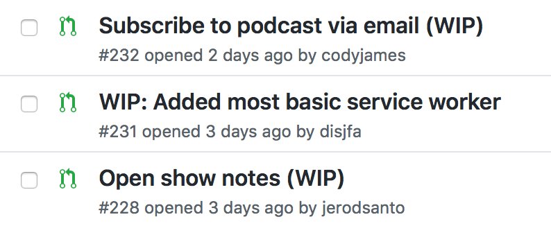 We shipped the finale episode of Requests For Commits today ~> https://changelog.com/rfc/20 It’s a finale, but it’s not the end of the conversation — which continues on The Changelog podcast.
