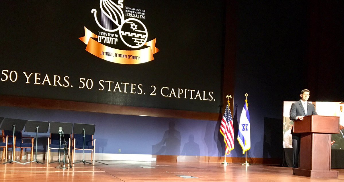 #Jerusalem. Speaker Paul Ryan at the podium.#50forJerusalem