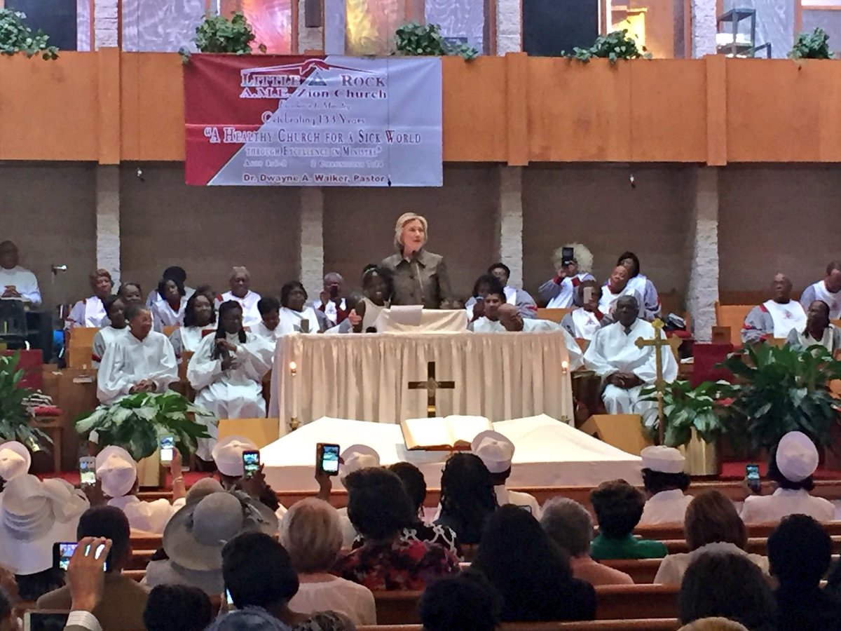 Hillary Clinton is attending church at Little Rock AME in Charlotte. She's joined by Zianna Oliphant. Read her storyhttp://nbcnews.to/2dxWWri