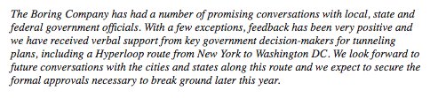 None of the jurisdictions that matter have given *any* approval, verbal or otherwisehttps://www.theguardian.com/technology/2017/jul/20/elon-musk-hyperloop-verbal-government-approval?CMP=share_btn_tw …