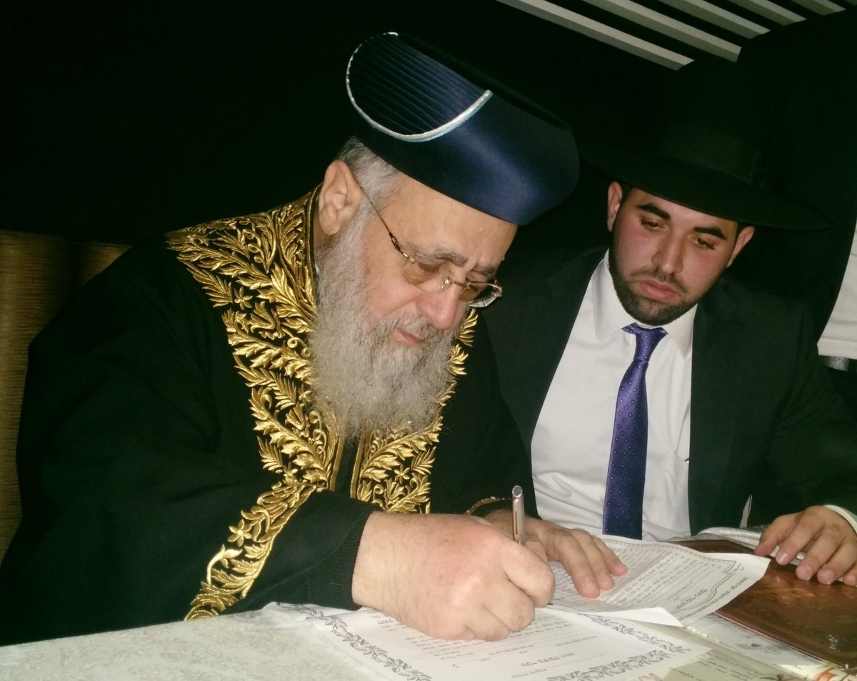 19. מרן הרשל"צ הרב יצחק יוסף שליט"א בסידור חופה וקידושין בחתונת הבחור החשוב מבחירי ישיבת "חזון עובדיה" משה כלפון הי"ו