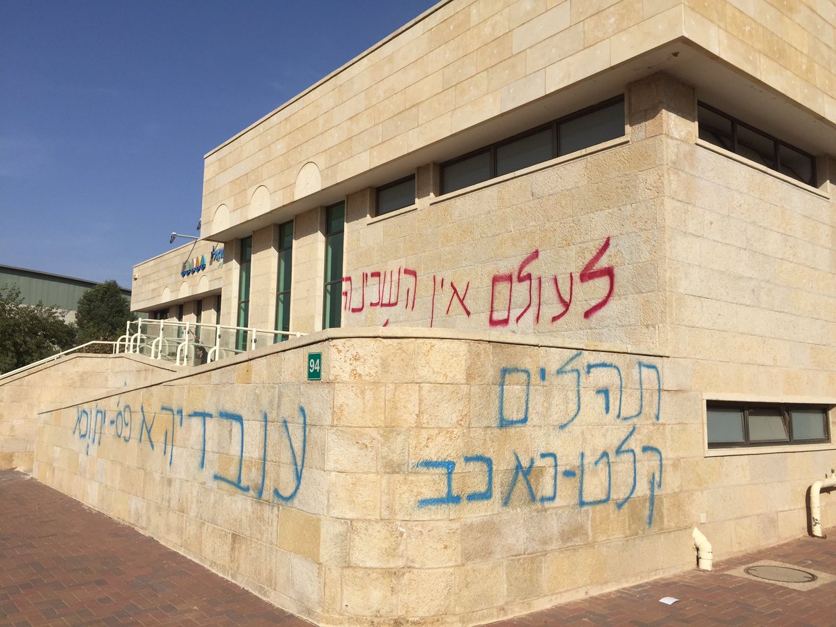 Threatening graffiti at Reform synagogue in Israel this morning. Protest vigil this evening,