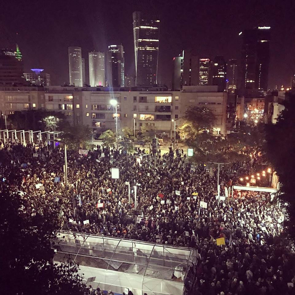 ההפגנה גדולה מאוד. האמת חשבתי שיהיו פחות ( שבוע שני, מתיחות בטחונית), אבל זה ענק. כל מרכז אלנבי רוטשילד חסום. אנרגיות שיא
