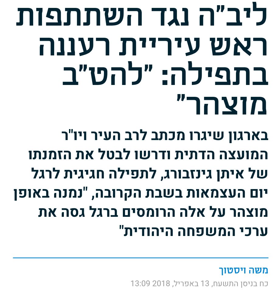 החרד"ל לא מוכן שראש עיר שהוא גם הומו ישתתף בתפילה בבית הכנסת הגדול בעירו לרגל יום העצמאות. 1. ככל שהאנשים האלה יצברו כוח זכויות הפרט שלנו ילכו וימחקו. 2. יפה עם זאת שאין להם שום בעיה עם ראש ממשלה שחטא בניאוף. יודעים גם להיות סובלניים כשזה משתלם להם.pic.twitter.com/xk5qTwpwiT