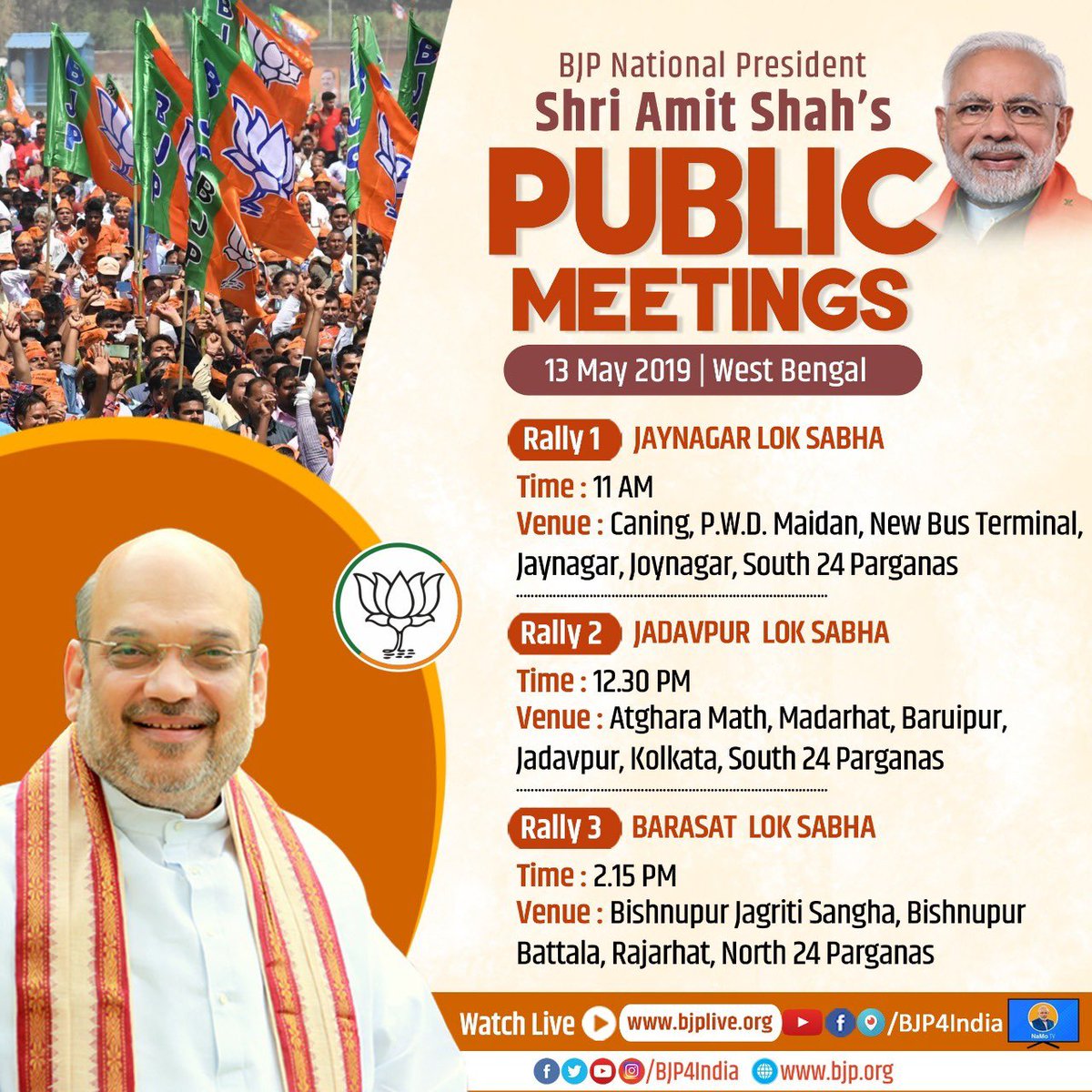 Schedule of BJP National President Shri Amit Shah’s public meetings in West Bengal.pic.twitter.com/gMwlqpeTLW