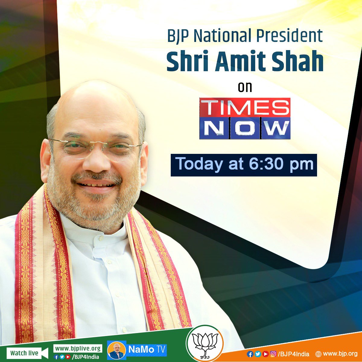 @AmitShah's interview to@TimesNow today at 6.30 pm.#DeshModiKeSaathpic.twitter.com/8jvWoSeHdu