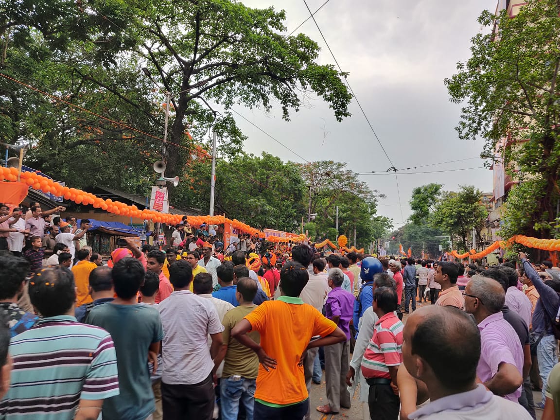 BJP’s massive roadshow in the heart of Kolkata. Mamata Banerjee must be squirming at the sea of saffron in her backyard!