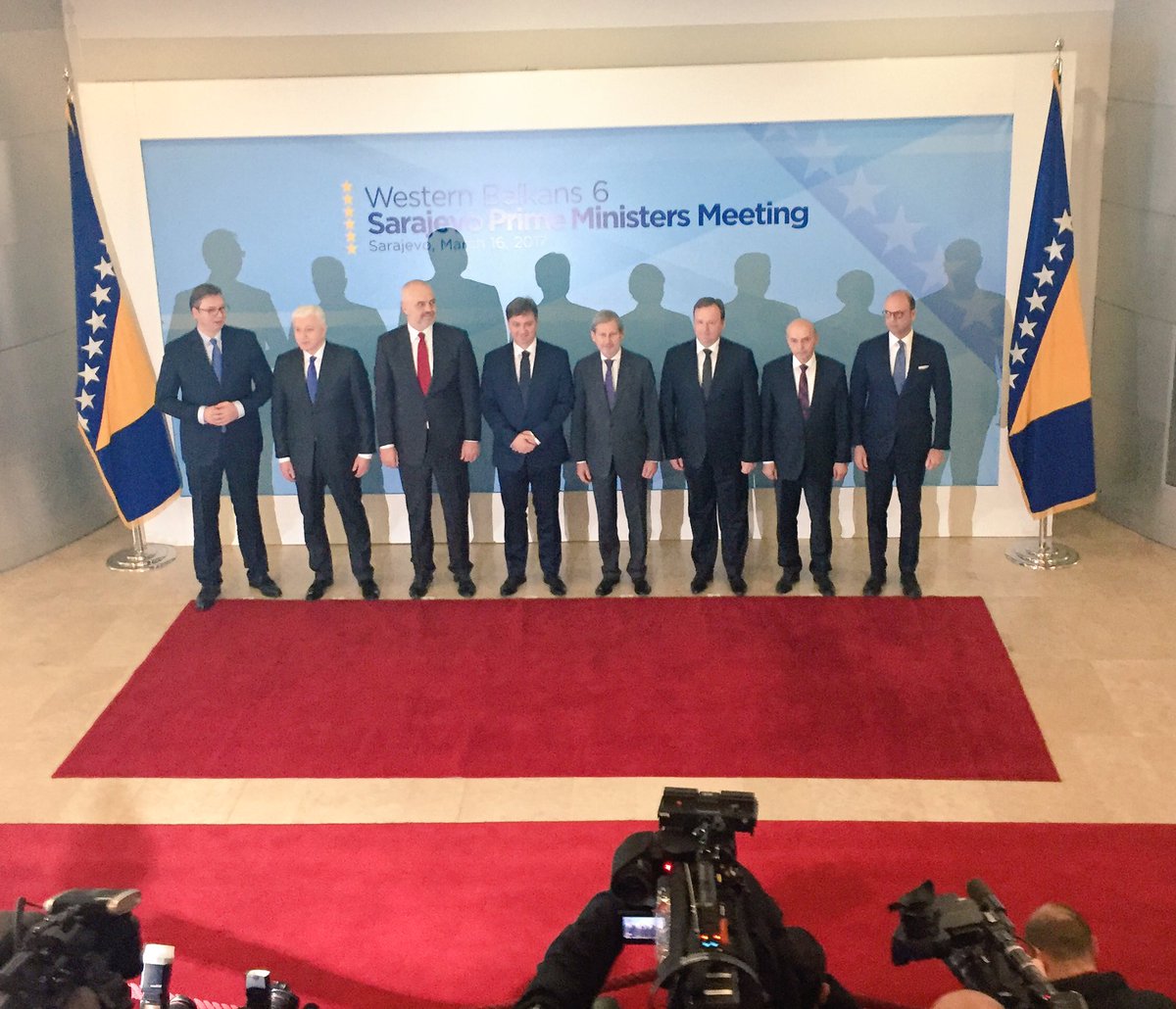 @JHahnEU at the Western Balkans Six Prime Ministers Mtg in#Sarajevo. Paving the way for Trieste summit, connectivity in focuspic.twitter.com/AdcxGUEsPD