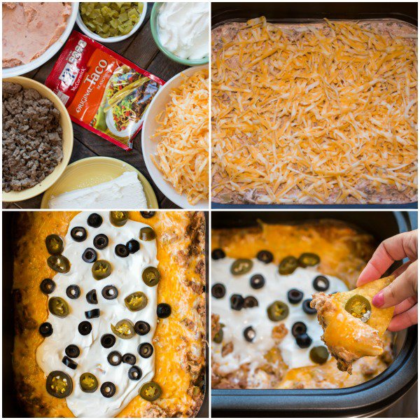Slow Cooker Texas Trash Beef and Bean Dip! So many flavors going on here!