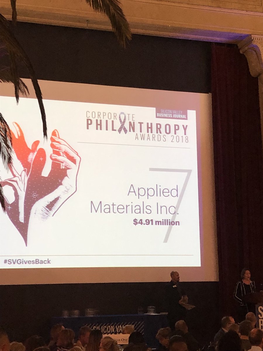 Honored to be recognized as the #7 Corporate Philanthropist in Silicon Valley tonight by the