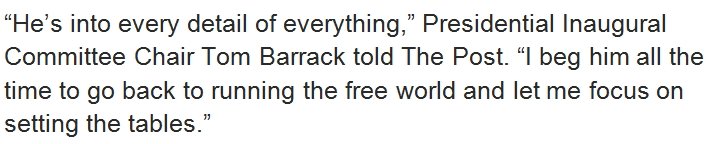 7. The head of Trump's inauguration says he begs Trump to pay attention to presidential stuff rather than dinner decor: