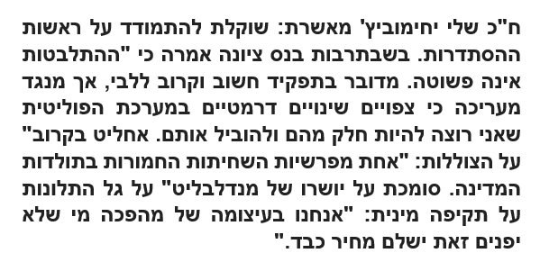ישר כח לשלי יחימוביץ שתמיד מביעה את דעתה ....אגב אני גם חושב כך.. ורוב העם המשרת בצה'ל חושב כך