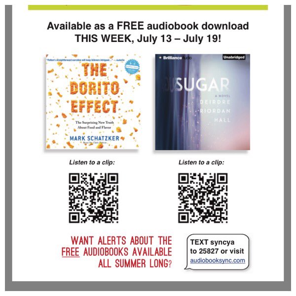 Summer is not over yet! Keep your teens engaged with FREE audiobooks Sync, . Two free audiobooks can be downloaded each week.