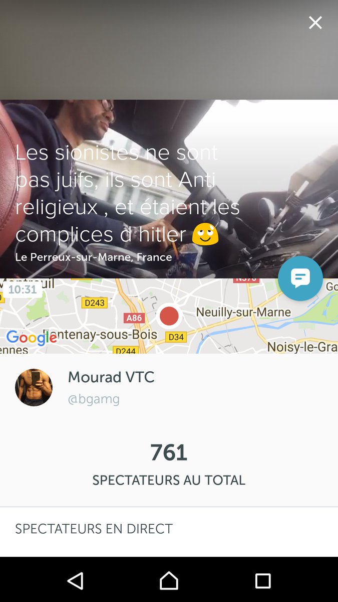 Ok. Y a un chauffeur qui se periscope, au volant, en pleine tirade antisémite.