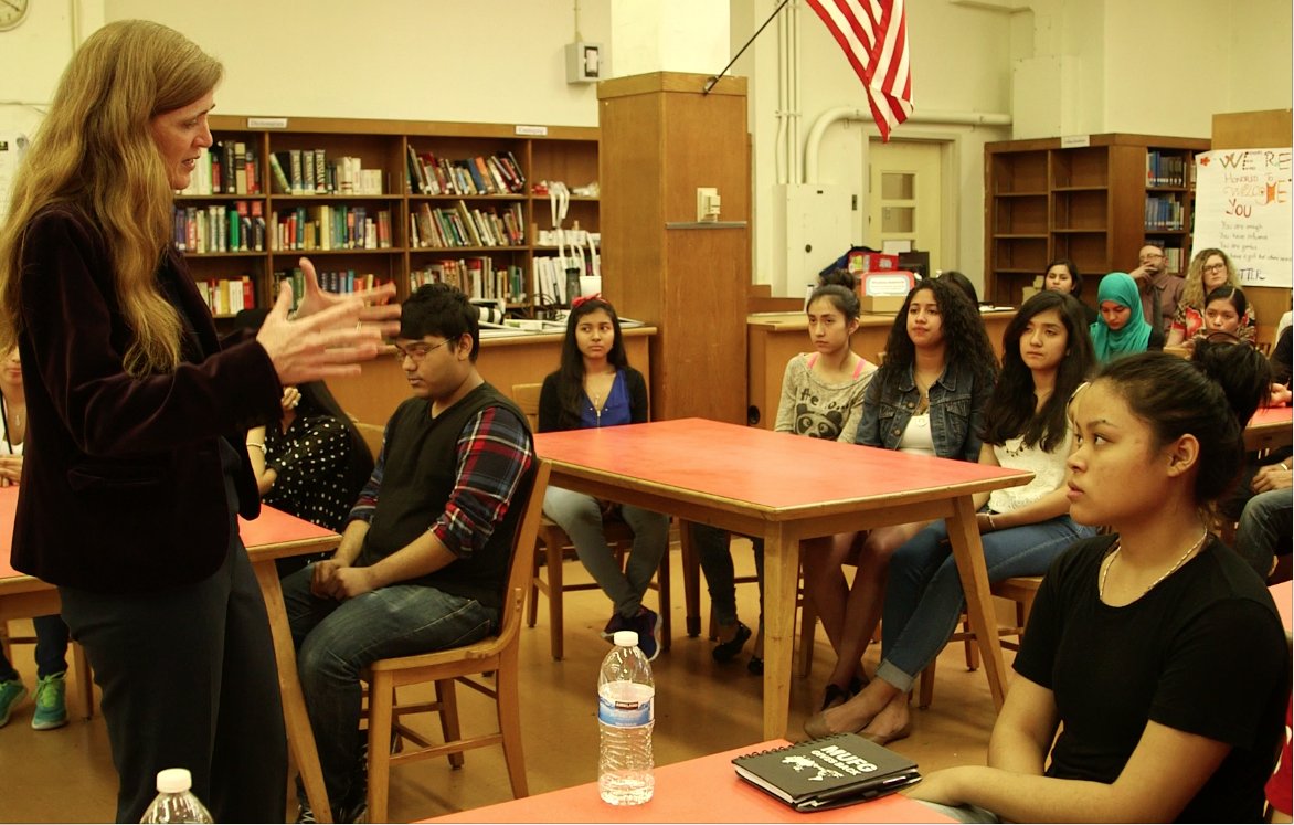 @AmbassadorPower in conversation with#students about the global#refugee crisis http://bit.ly/2jZp34T pic.twitter.com/5Am98bIksC