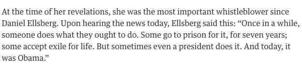 Here's what Daniel Ellsberg said upon hearing that President Obama commuted Chelsea Manning's sentence: https://www.theguardian.com/commentisfree/2017/jan/17/chelsea-manning-suffered-enough-obama-commutation-right-thing …pic.twitter.com/2Evq5kL00K