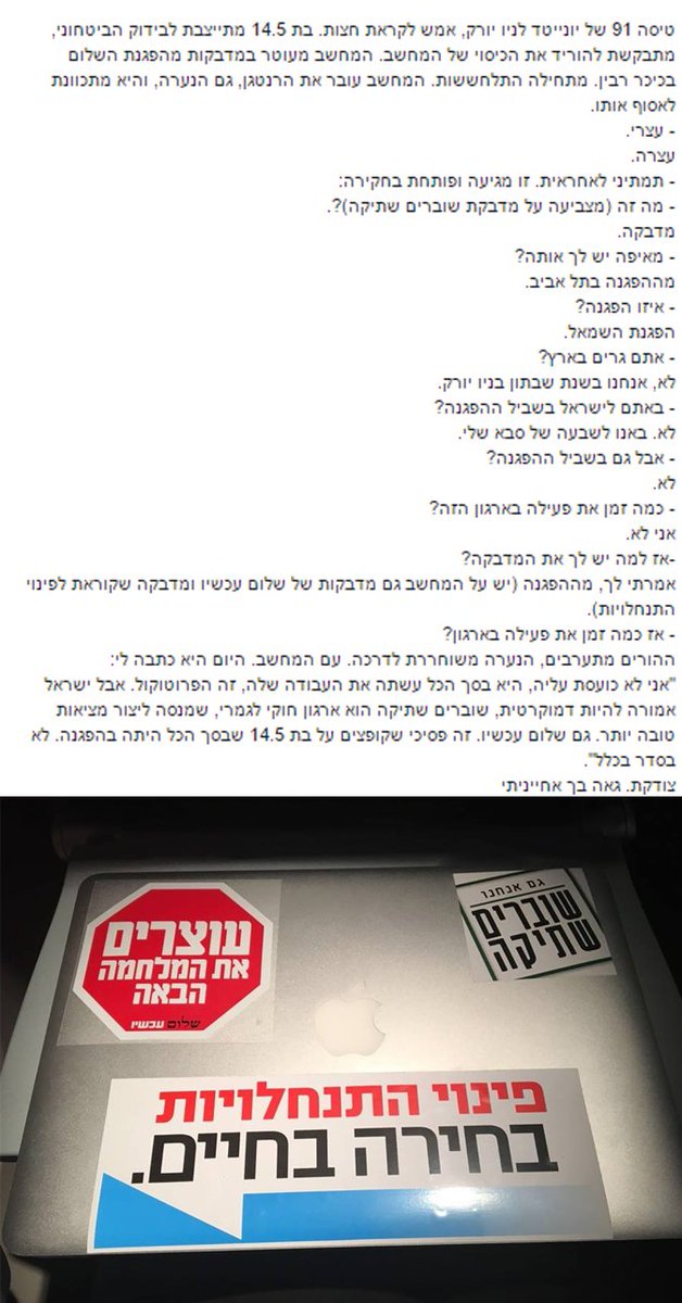 סיפור על מדבקה של שוברים שתיקה מקור: Tal Hassin בפייסבוק
