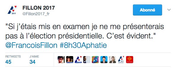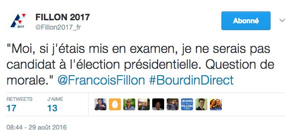 #Fillon, le 16 février : “Même si je suis mis en examen, rien ne m’arrêtera.” Ci-dessous, le même homme courant 2016 et 2017.pic.twitter.com/lOSCCy4UTI