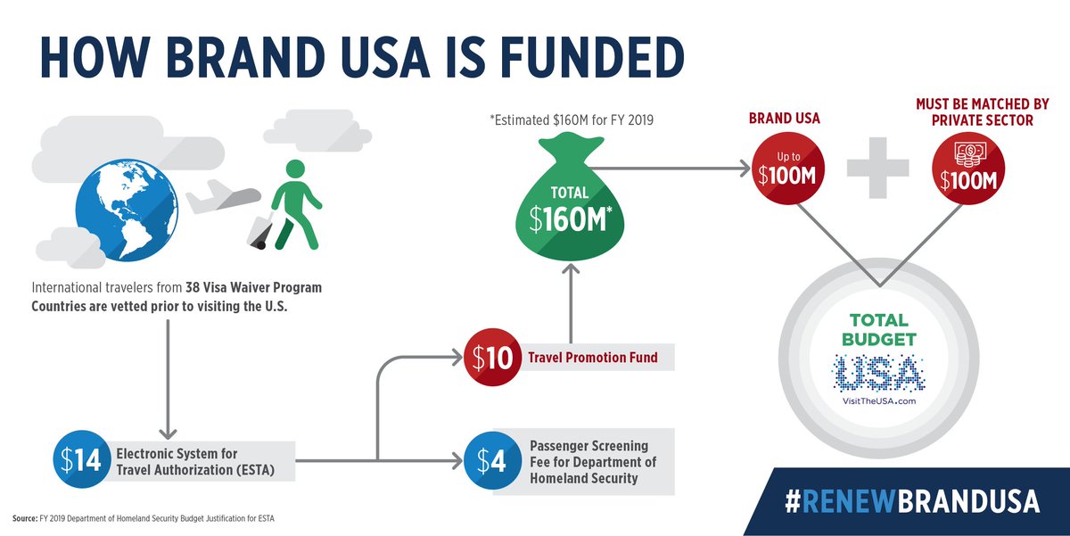 promotes the U.S. to foreign visitors, supporting thousands of jobs and lowering the trade deficit—at zero cost to taxpayers. How is the program funded?