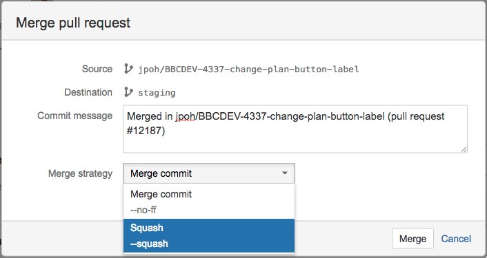 Squashing commits via command line with git merge --squash? Why not have Bitbucket do it for you? Squash merges: