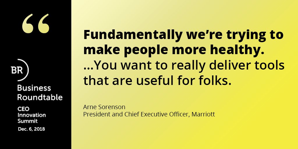 @Marriott CEO Arne Sorenson on providing more useful health tools for patients.#BRTXInnovation http://bit.ly/2QDDwqW pic.twitter.com/AqgA85cs8p
