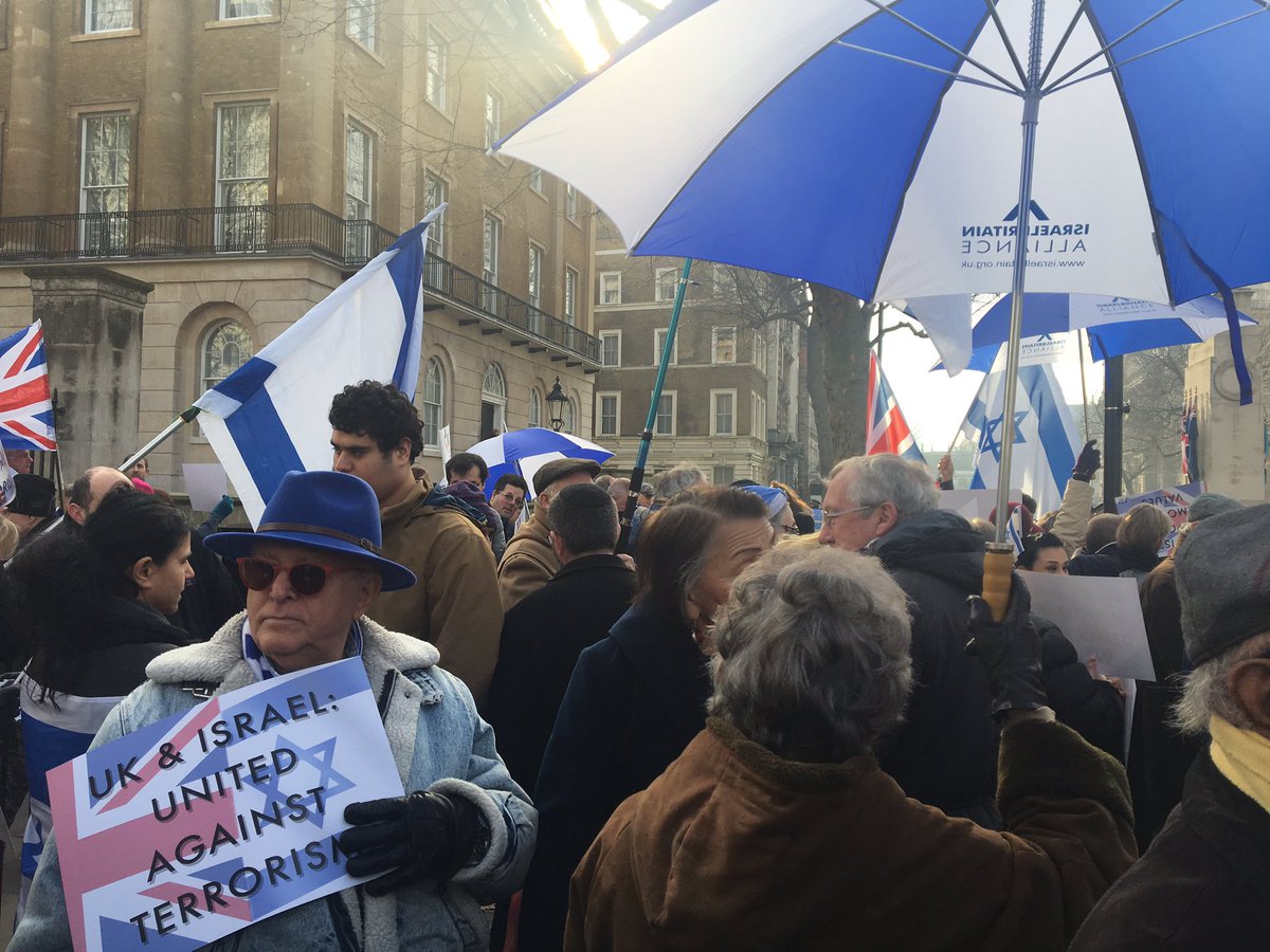 Pro-Israel crowds gather outside Downing Street ahead of Netanyahu-May meeting