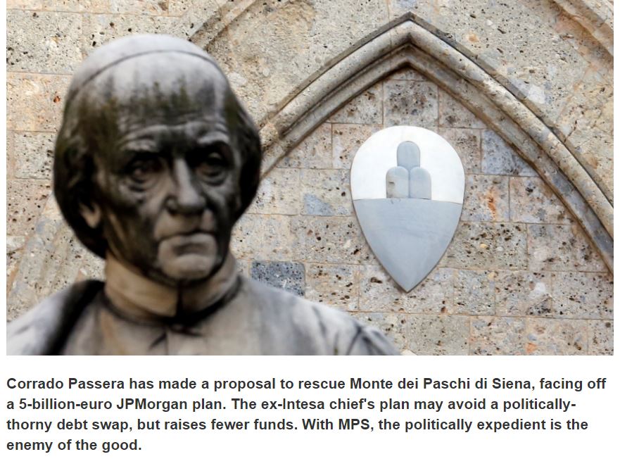 Ready soon at http://Breakingviews.com : Italy’s Monte dei Paschi di Siena fix is more political than practical, by